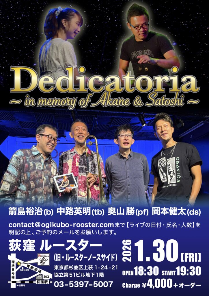 1/30(金)はラテン・ジャズ・バンド「Dedicatoria」のライブです。こちらは通算での回数がまだ3回目です。 |