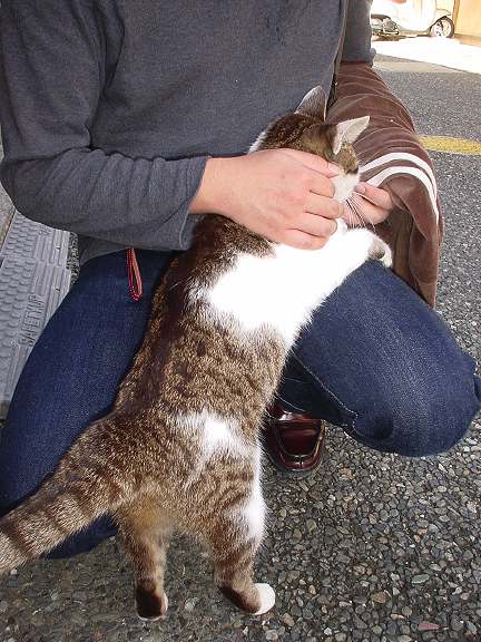 プライベートな旅行で一番心に残る事と言えば,ご当地の名物とか名所とかよりも行く先々で出会った生き物たちとの触れ合いの方が今までの経験では多いような気がします。石垣島では子ブタとの邂逅がそれでしたが,今回は何と猫だったんです。「抱っこをせがむ子犬」はどこででもよく見かけますが,「抱っこをせがむ猫」というのは内子に来て初めて出会いました。